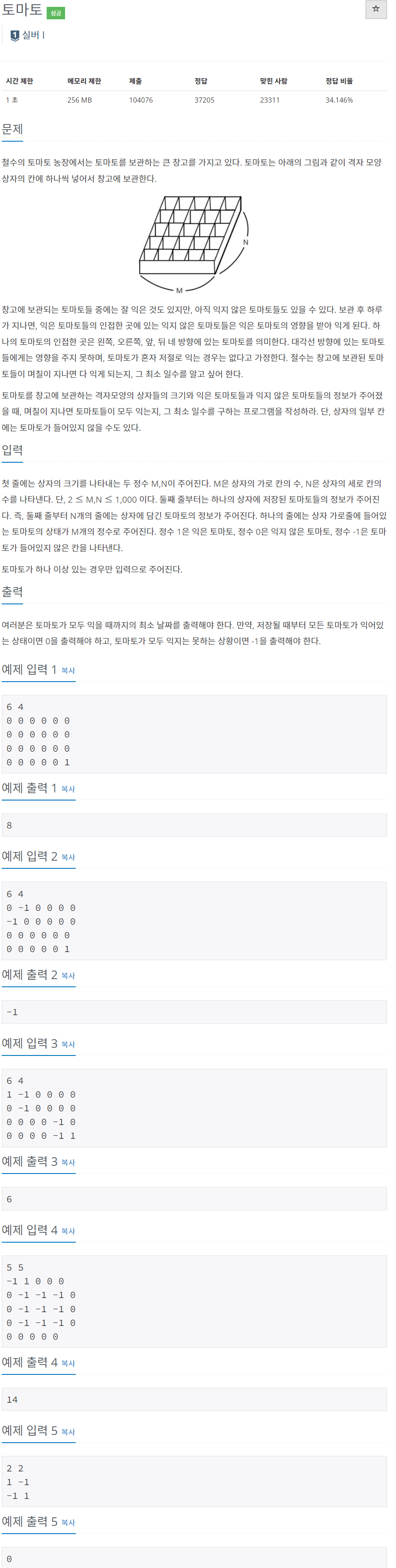https://www.acmicpc.net/problem/7576
