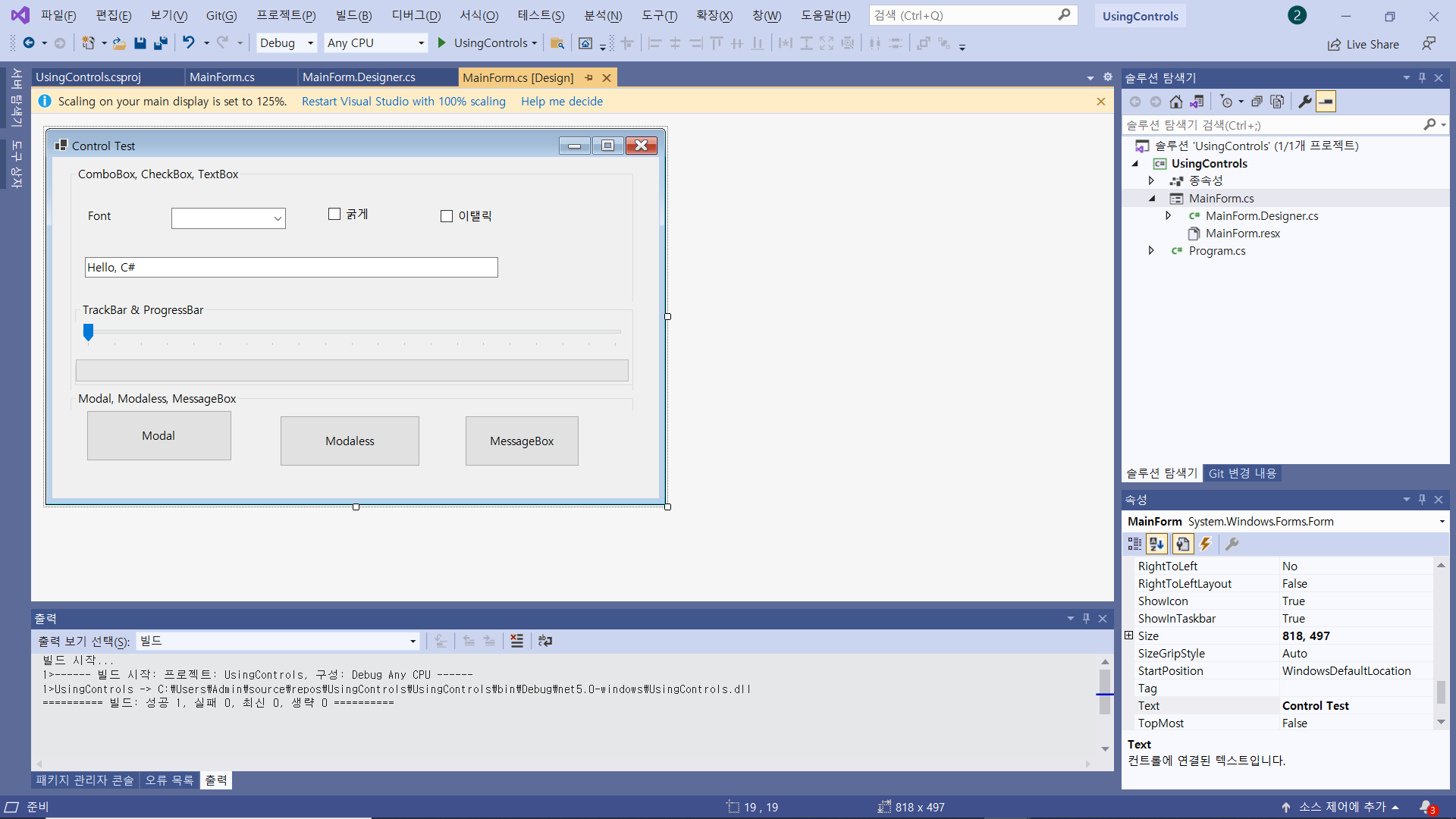메뉴, 콤보박스, 리스트뷰, 버튼, 텍스트박스 등과 같은 표준 컨트롤 제공